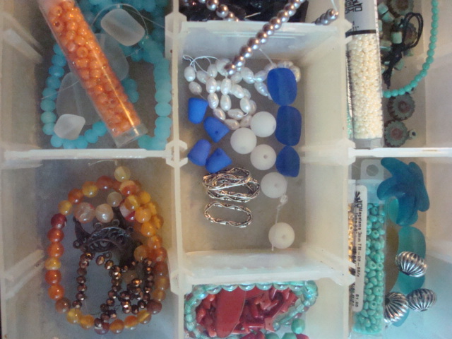 I came up with the idea to just put my beads for the six projects in a compartment type
